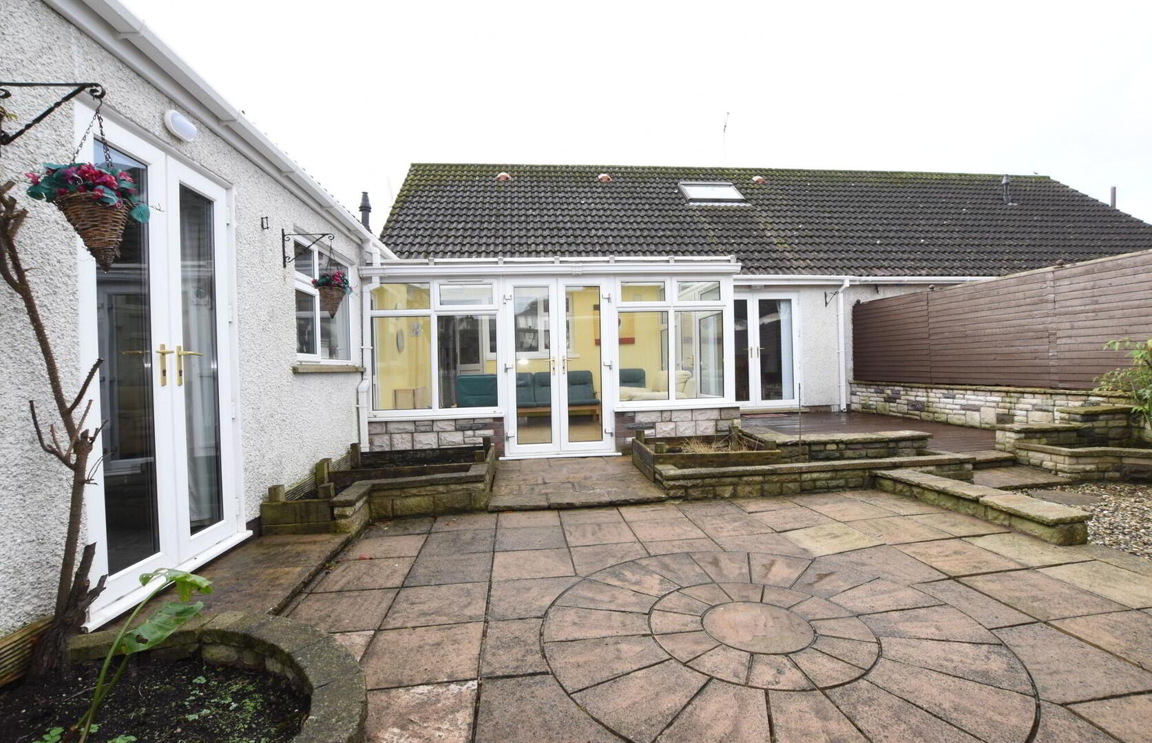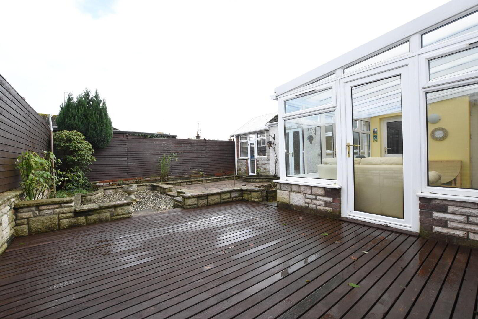 Enclosed easily maintained gardens to rear, with a double glazed workshop/ potting shed to the rear of the garage.
