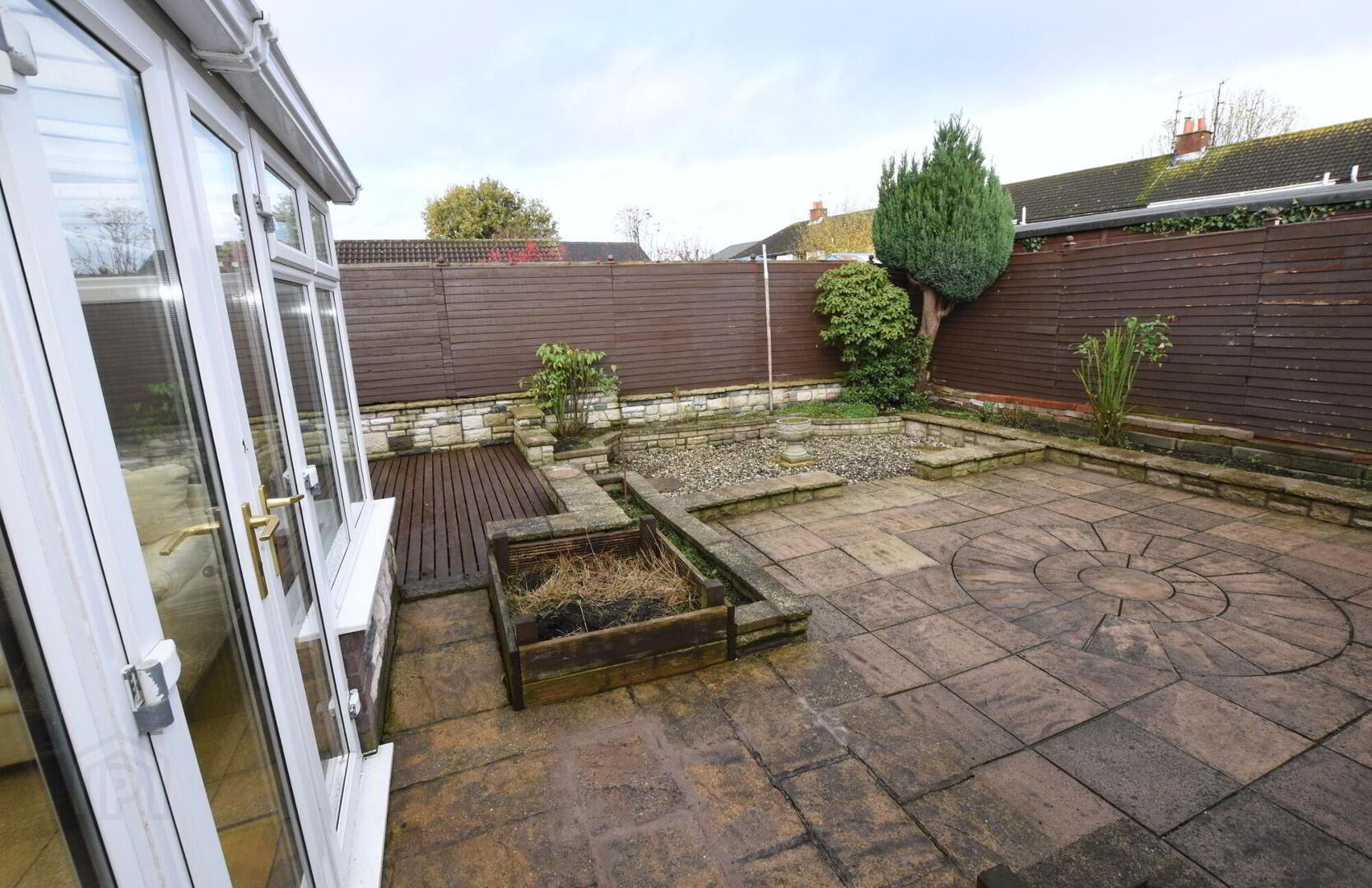 Completely paved enclosed back garden.