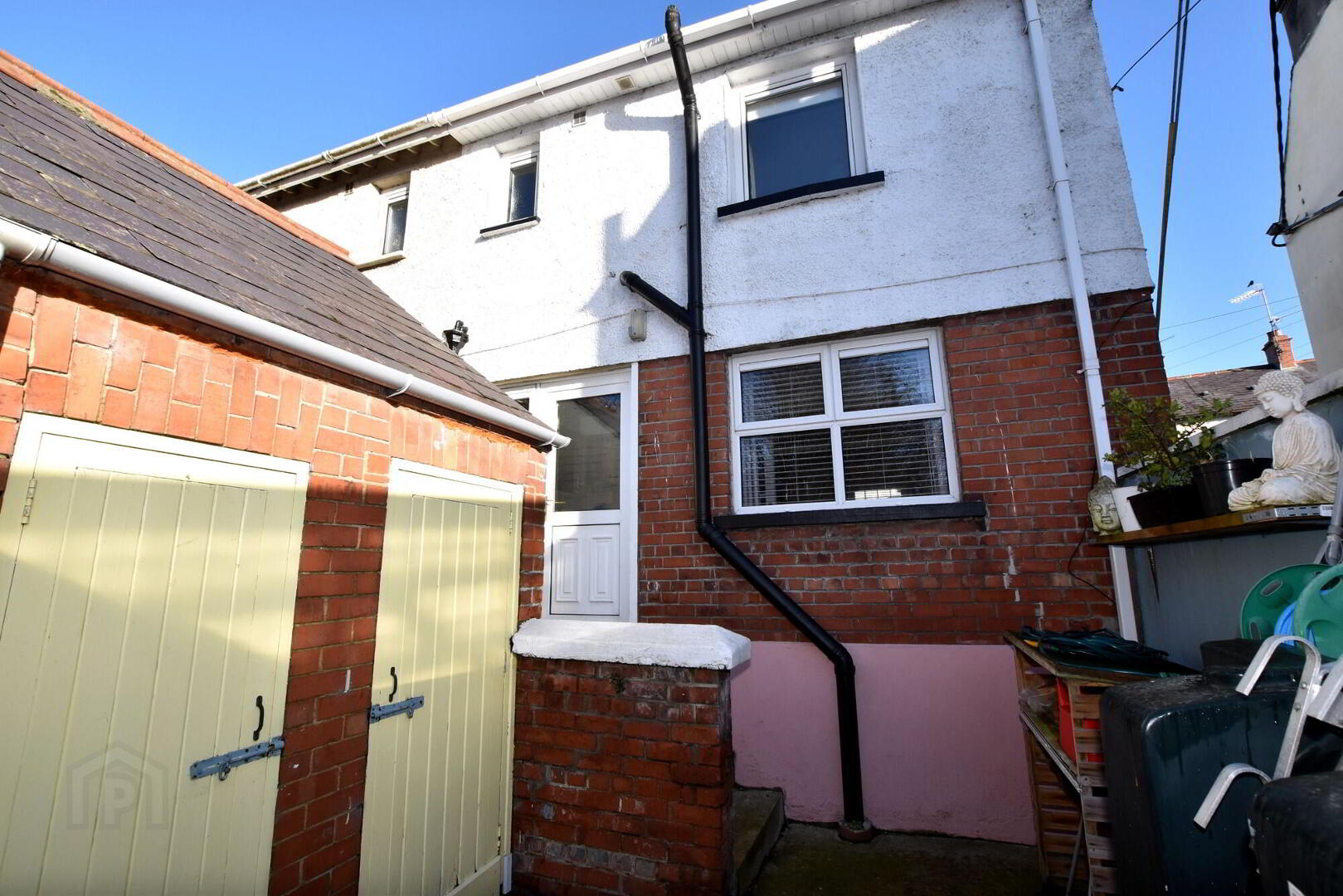 Enclosed private rear yard with 3 outside stores comprising; coal shed, boiler house housing the oil-fired condensing boiler (replaced 6th June 2022) and outdoor electrical socket and 3rd store housing an outside wc. Outside watertap.
