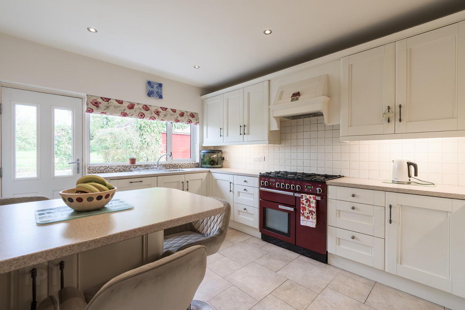 Traditional style modern fitted kitchen with an excellent range of high and low level units. Stainless steel sink unit with mixer taps. Integrated dishwasher. Extractor hood. Space for a range style cooker. Part tiled walls. Breakfast bar. Tiled floor. Vertical high output radiator. Low voltage downlights. Glass door to a walk-in pantry - Walk-in pantry