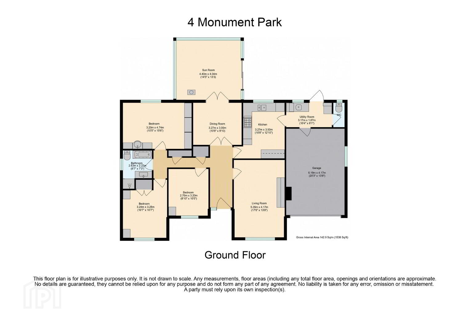 Accommodation comprises covered entrance porch, entrance hall, sitting room, dining room, large sunroom with cast-iron wood burning stove, kitchen / dining area, utility room, cloakroom with wc, inner hallway, 3 bedrooms and bathroom.