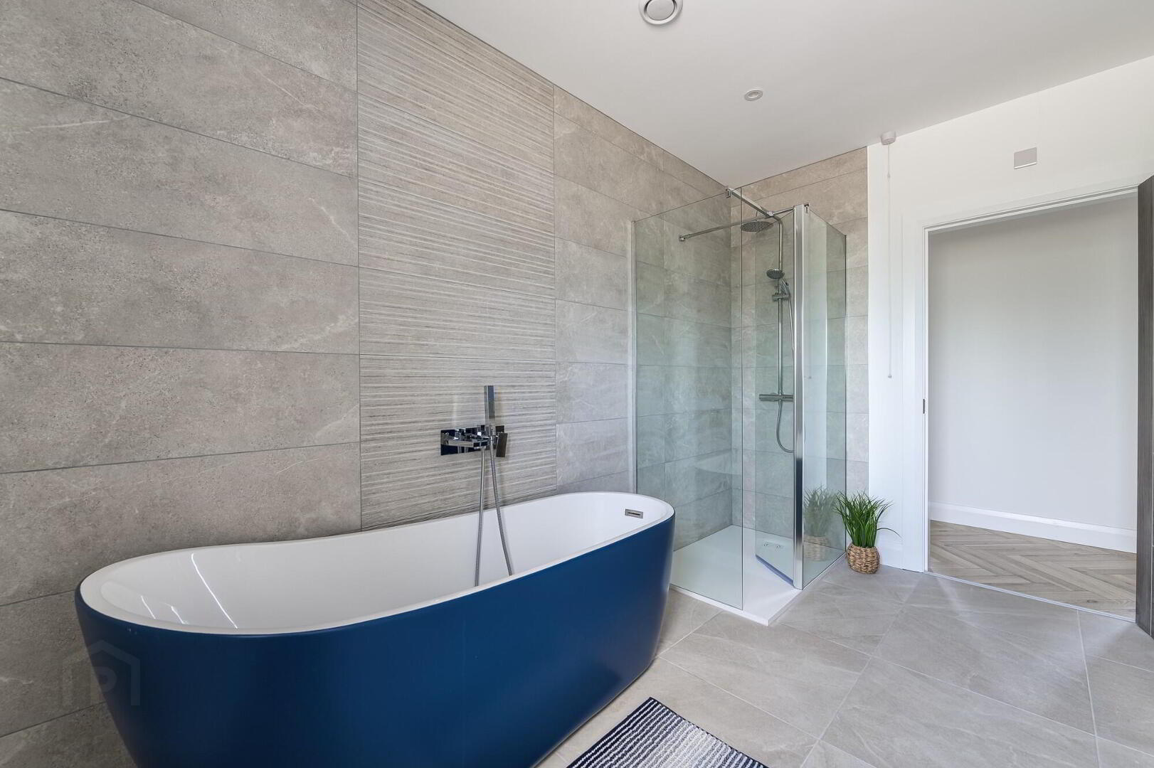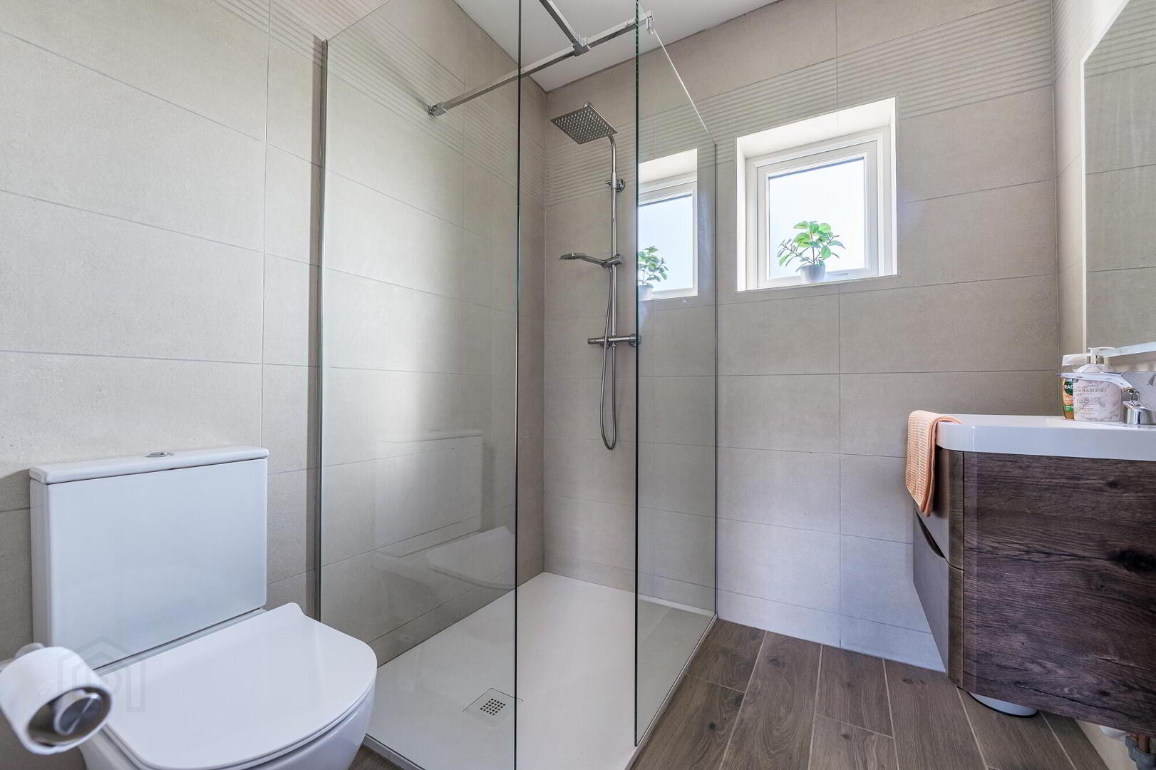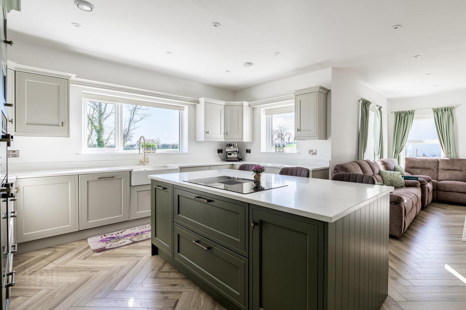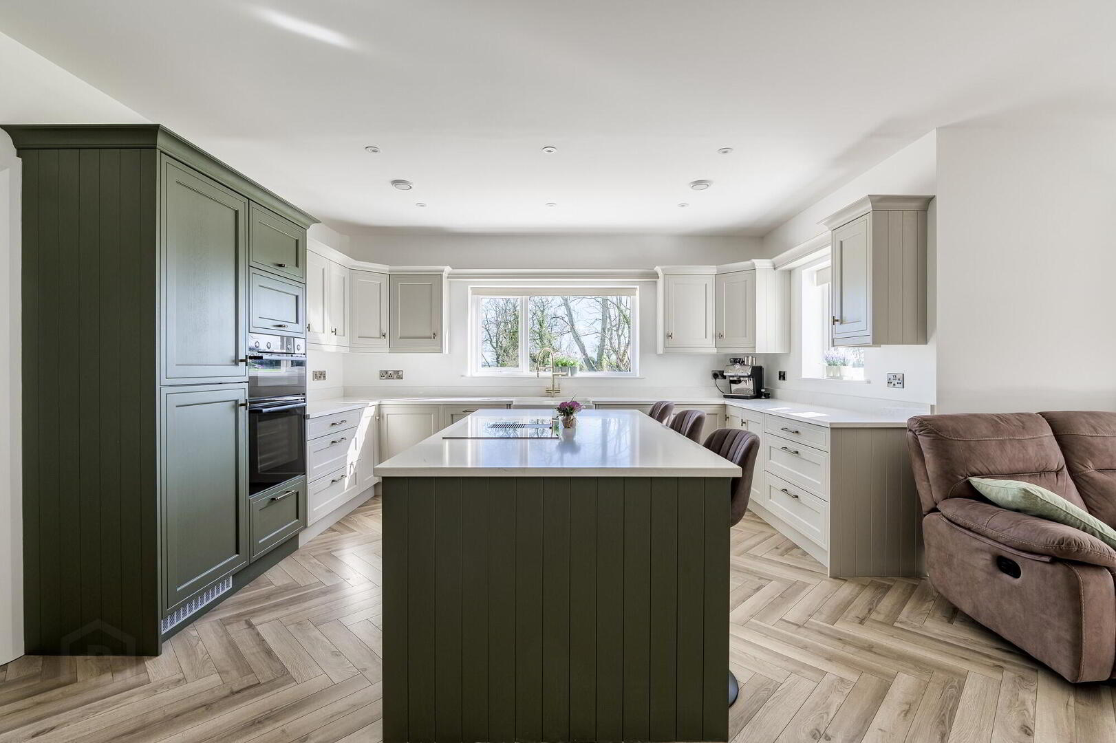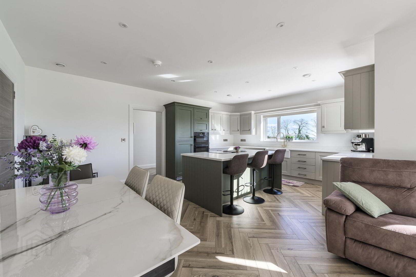 - uPVC Double glazed entrance door with co-ordinating side panels, Beautiful Herringbone laid LVT flooring. Low voltage downlighting. built-in hotpress.