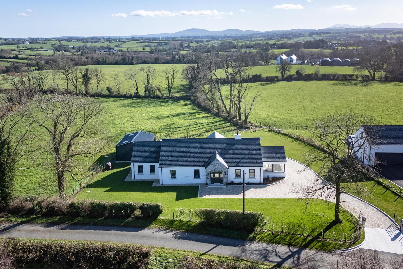 It has a Brazilian slate roof, and features Mourne granite stonework to the outside render.