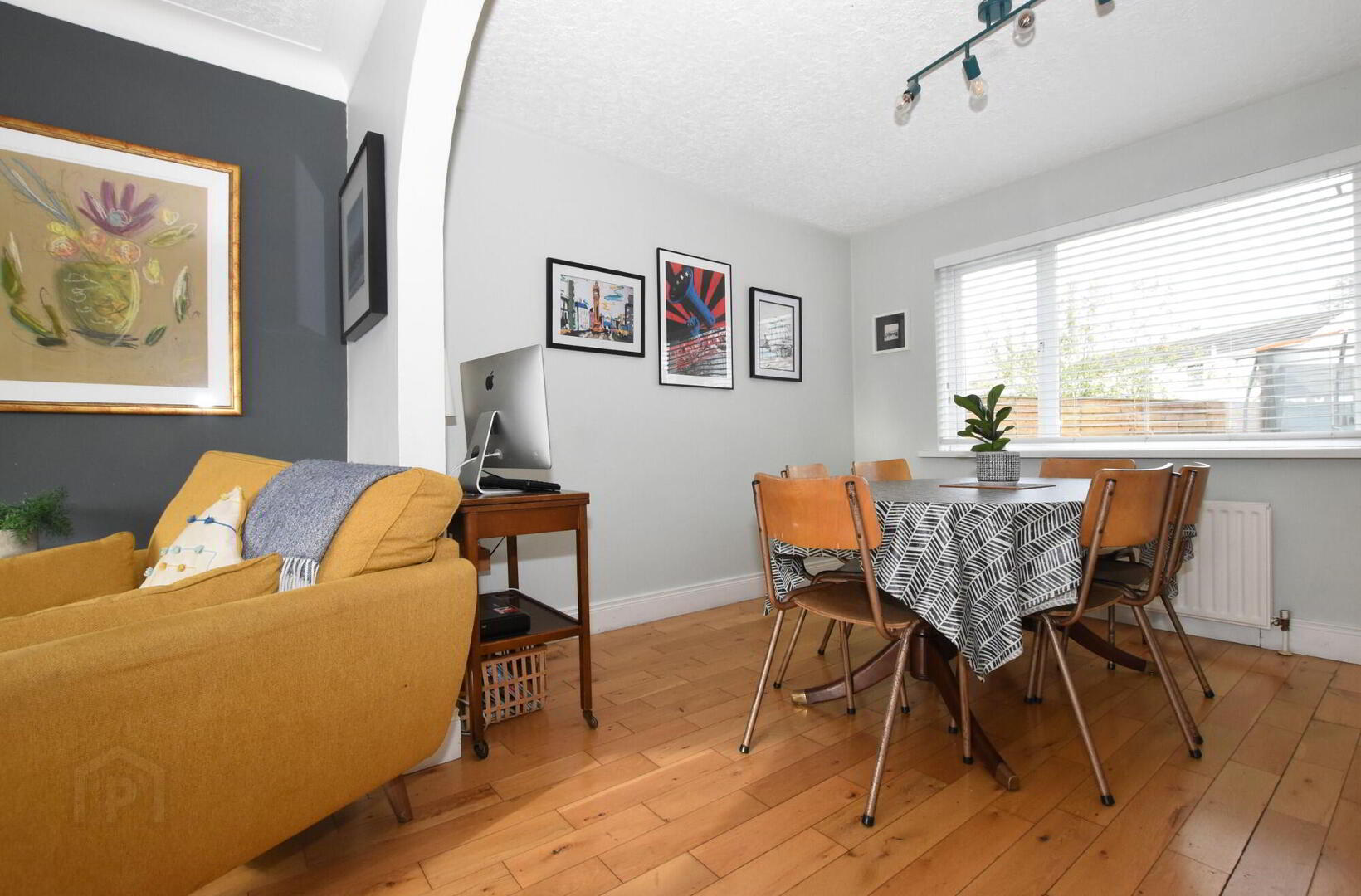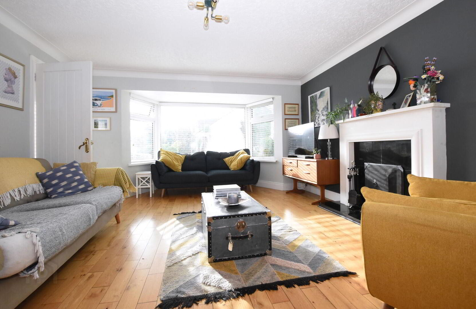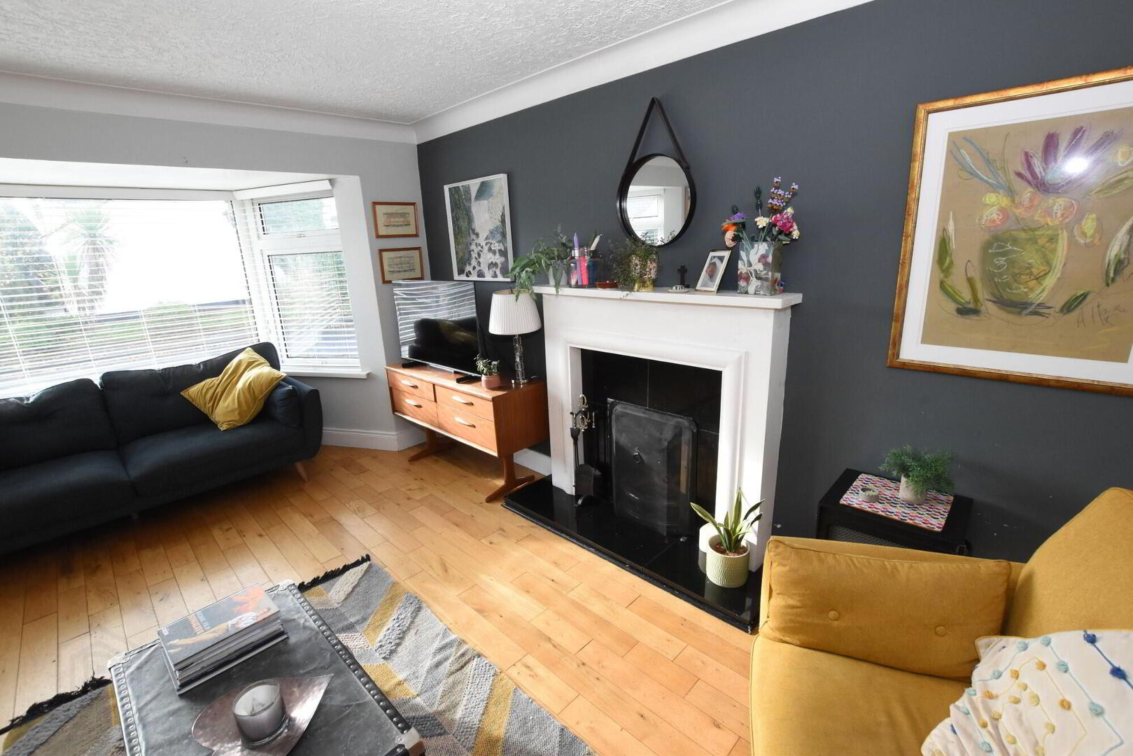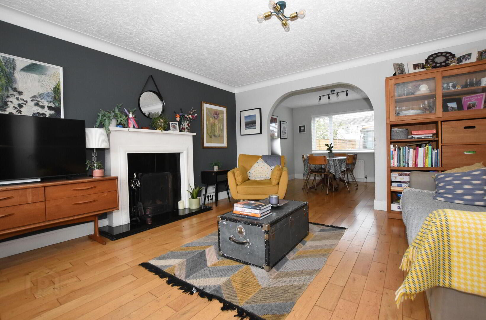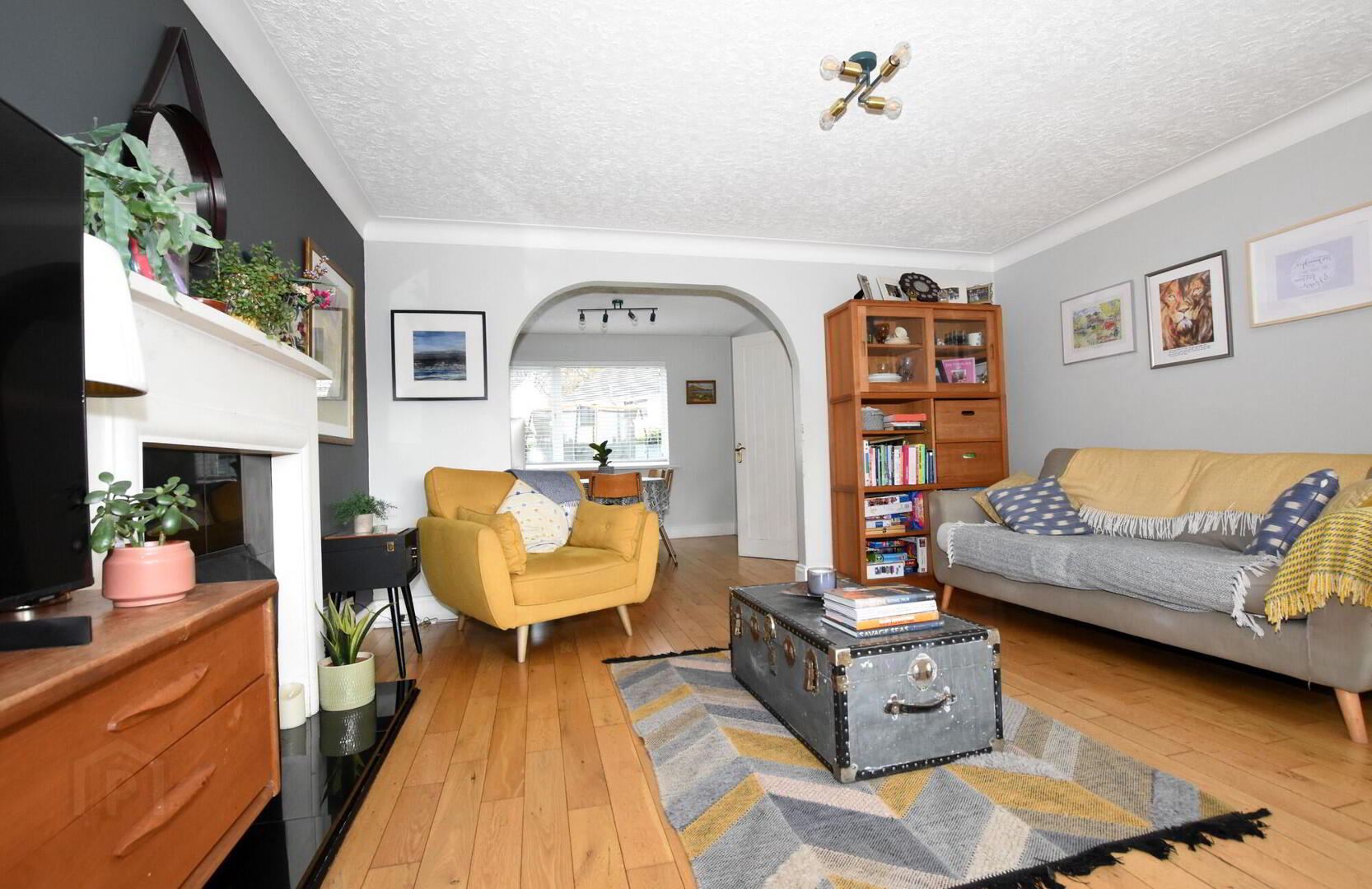 Feature fireplace with tiled inset and hearth. Solid wooden strip flooring. Feature bay window. Coving to ceiling. Archway to dining room.