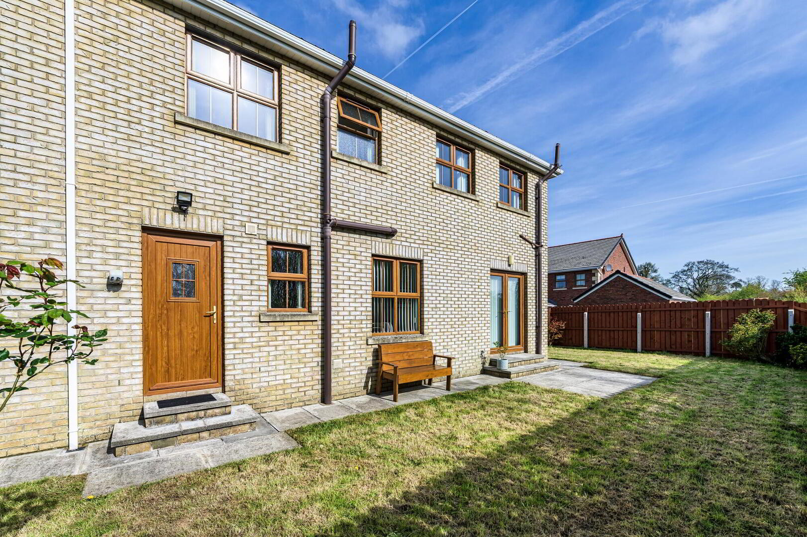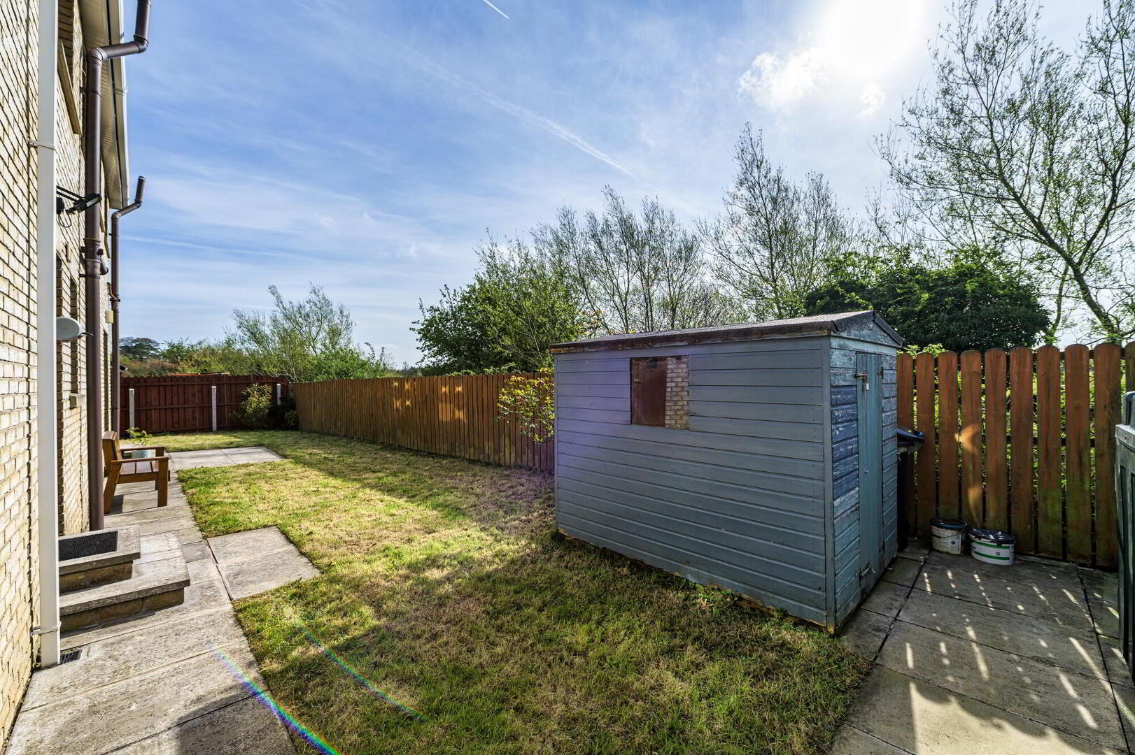 Good size enclosed rear and side gardens in lawn. Paved patio and pathways. Garden shed. Oil tank.