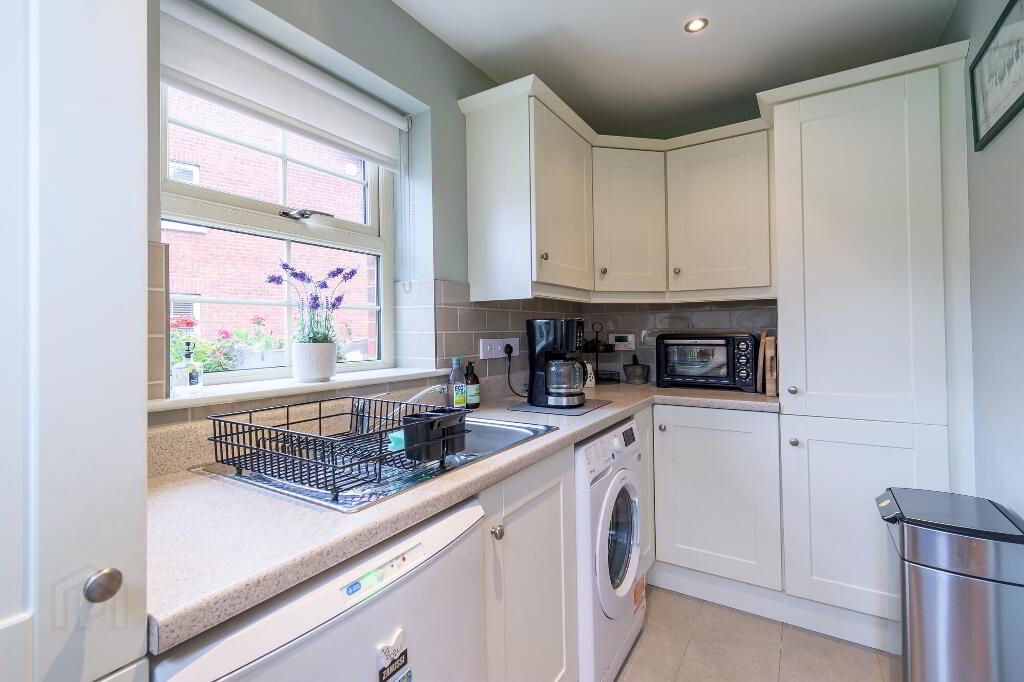 Superb contemporary fitted kitchen with an excellent range of high and low level units. Granite worktops with an inset Rangemaster Belfast sink unit with mixer tap. Part tiled walls. Integrated fridge/ freezer. Integrated dishwasher. Stainless steel gas hob. Built-in underoven. Low voltage downlights. - Utility room