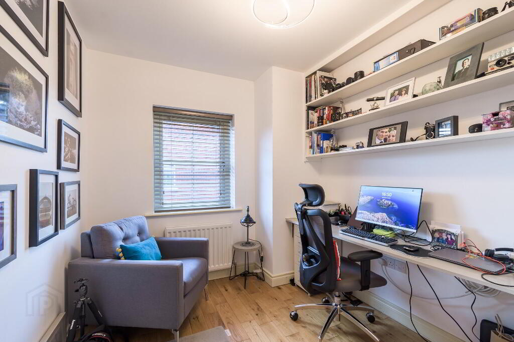 (Presently used as an office) Built-in shelving. Built-in desk. Solid oak engineered flooring - Bathroom