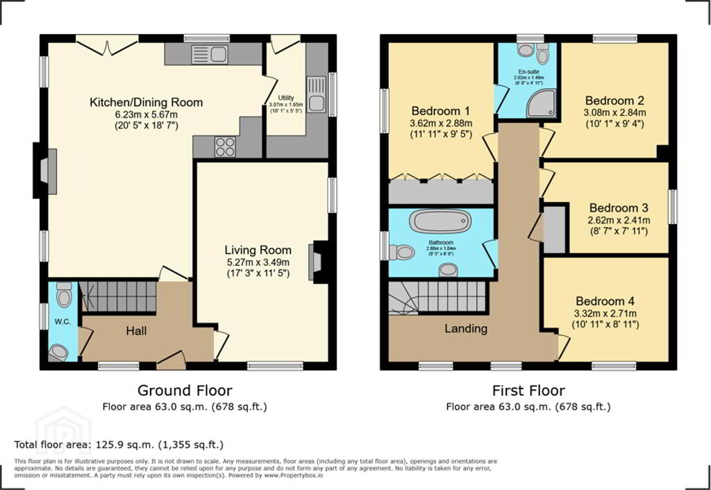 Accommodation comprises; entrance hall, downstairs cloakroom, sitting room, living room with cast iron wood burning stove open to kitchen/ dining area, utility room, landing, 4 bedrooms (master with en-suite) and bathroom.