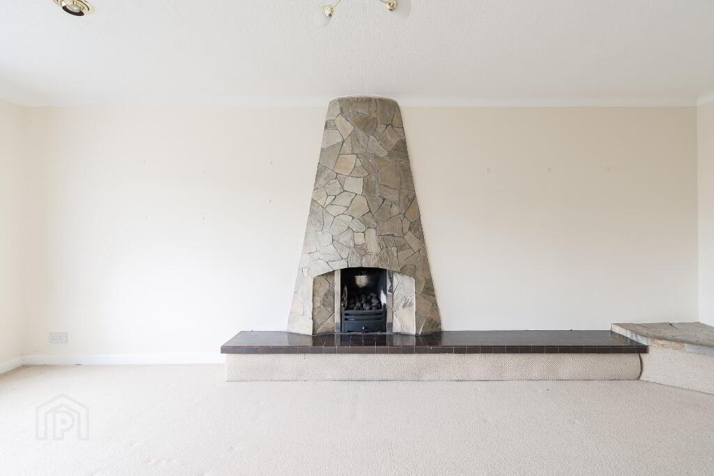 Feature stone fireplace with raised tiled hearth. Inset gas fire. Coving to ceiling.