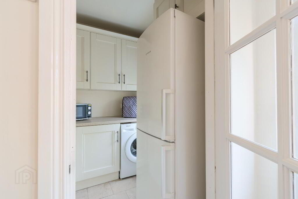 Range of co-ordinating fitted kitchen units. Tiled floor. Plumbed for automatic washing machine. Space for fridge/ freezer