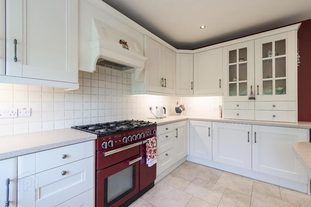 Traditional style modern fitted kitchen with an excellent range of high and low level units. Stainless steel sink unit with mixer taps. Integrated dishwasher. Extractor hood. Space for a range style cooker. Part tiled walls. Breakfast bar. Tiled floor. Vertical high output radiator. Low voltage downlights. Glass door to a walk-in pantry - Walk-in pantry