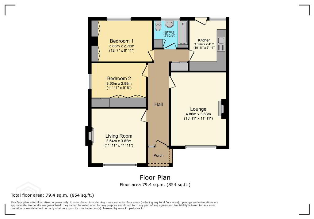 Accommodation comprises; covered entrance porch, entrance hall, sitting room, living room, 2 bedrooms, kitchen and bathroom.