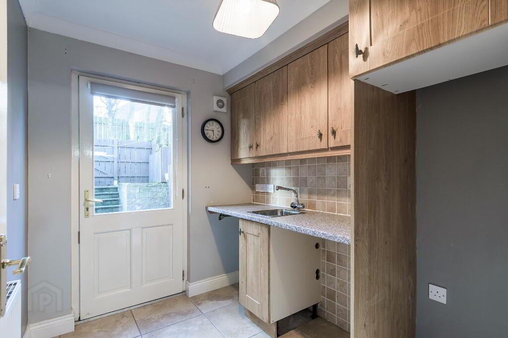 High and Low Level Units. Inset Stainless Steel Sink Unit with Mixer Tap. Plumbed for Automatic Washing Machine. Space for Tumble Dryer. Coving to Ceiling. Exterior Door. Tiled Floor. Part Tiled Walls. Space for Fridge Freezer.