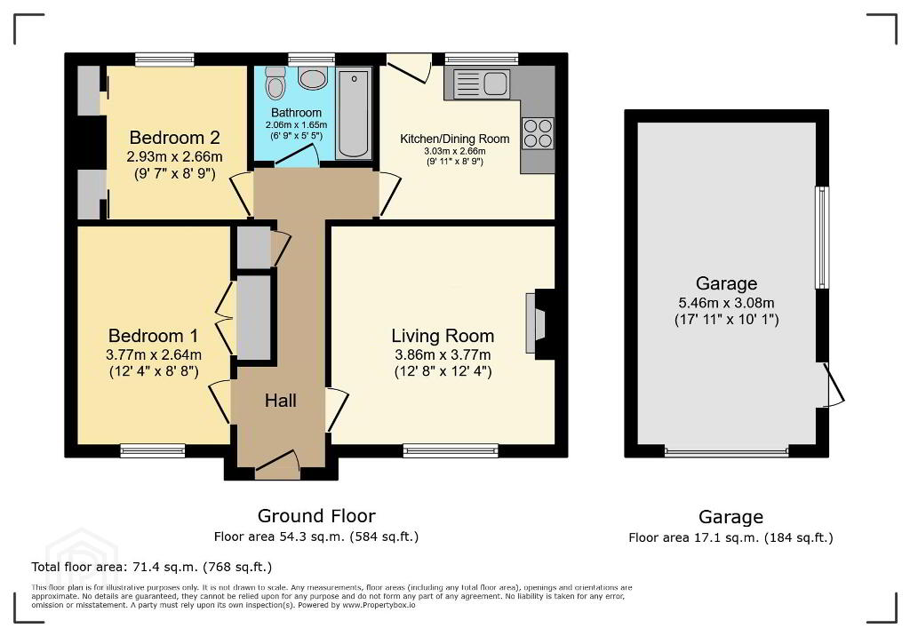 Accommodation comprises: Entrance Hall, Living Room, Kitchen / Dining Area, 2 Bedrooms and Bathroom.