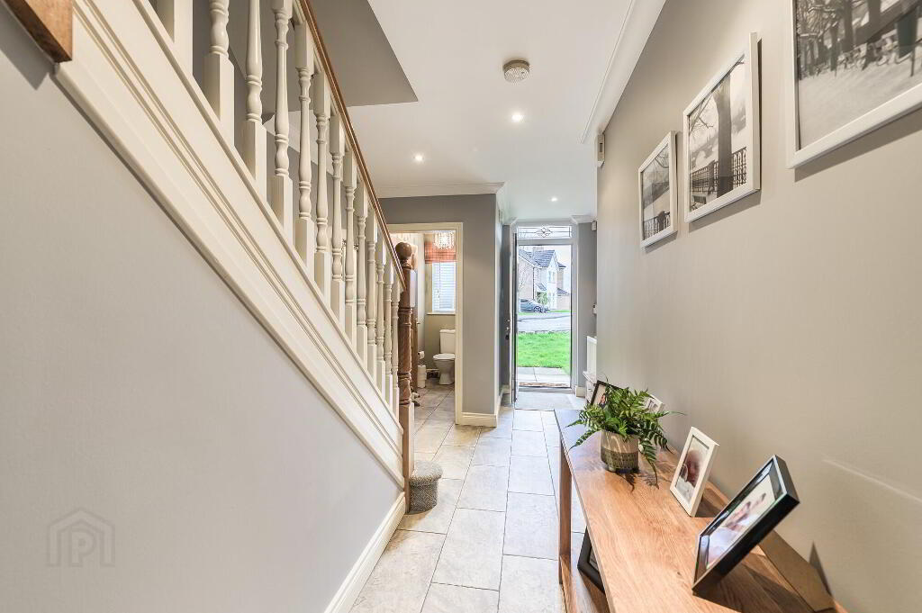 - uPVC Double glazed entrance door with leaded centre panel. Tiled floor. Coving to the ceiling. Spindled staircase to first floor with feature oak carved newel post