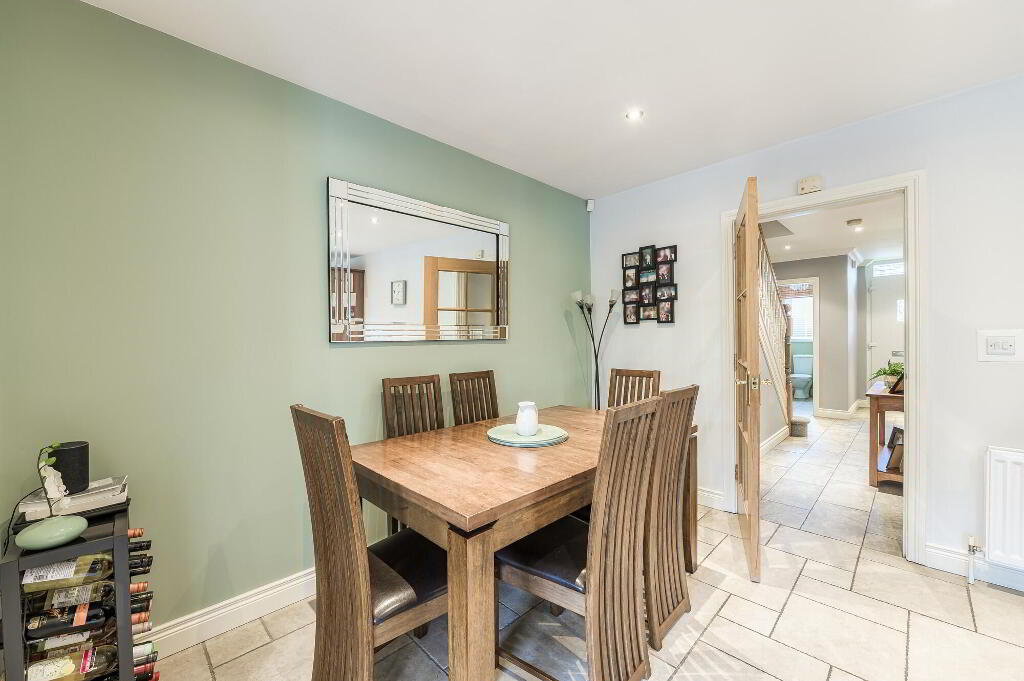 Feature fireplace with granite inset and gas fire. Solid oak strip flooring. Cornice to ceiling. - Kitchen/ dining area