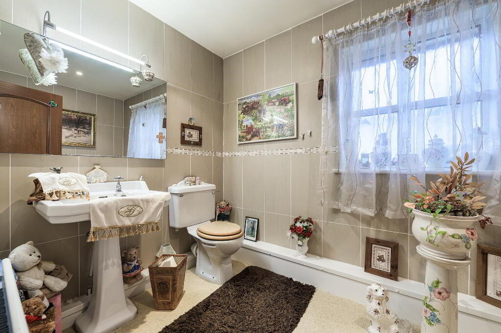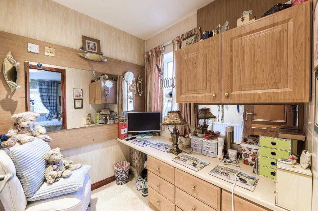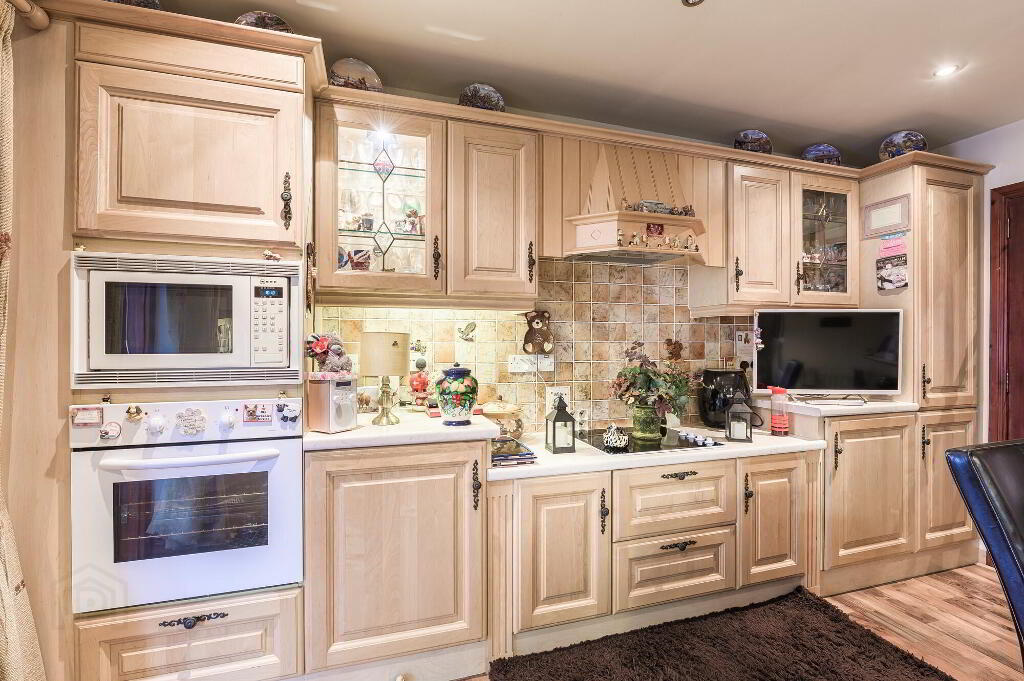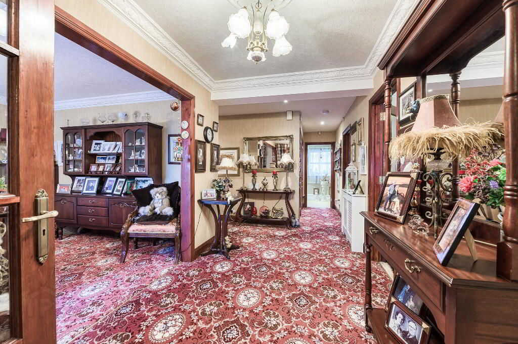Glass entrance door. Cornice to ceiling. Built in hot press. Large built in cloaks cupboard.