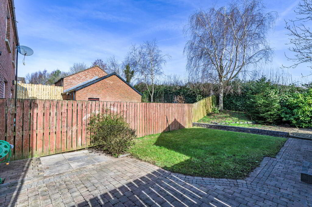 - Feature brick paved driveway and front garden. Flowerbeds in mature plants and shrubs. Enclosed rear garden in lawn. Brick paved patio area and pathway. Side gate. Easily maintained area in pink pebbles. Oil storage tank. Open aspect to the rear.