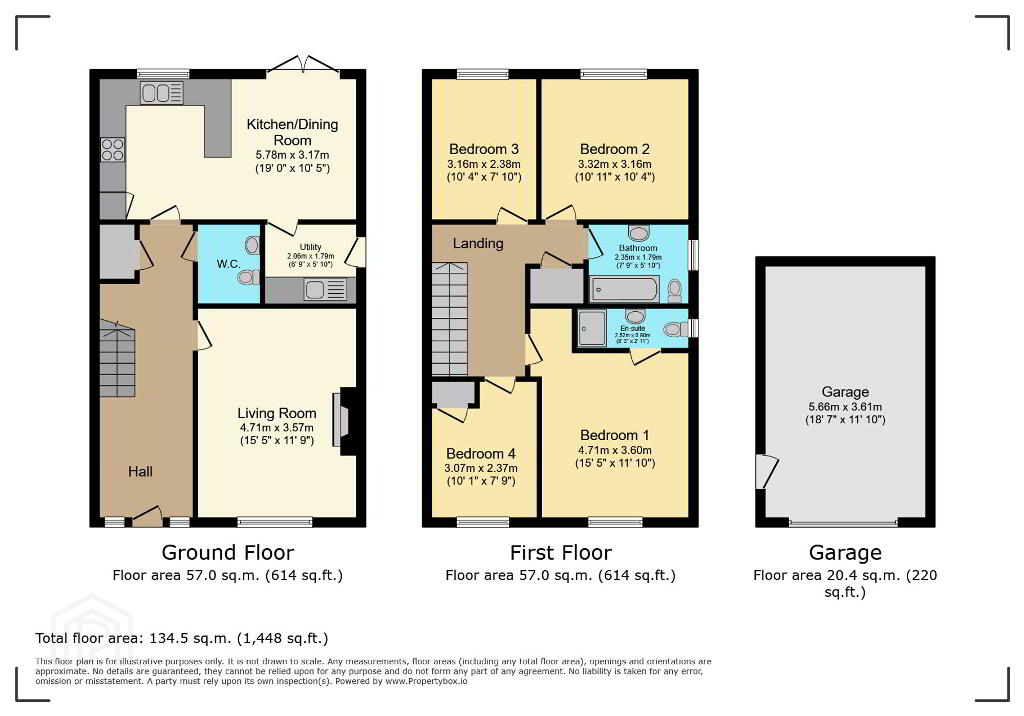 Accommodation comprises; entrance hall, cloakroom with wc, living room, kitchen/ dining area, utility room, first floor landing leading to 4 bedrooms (bedroom 1 with ensuite) and family bathroom.