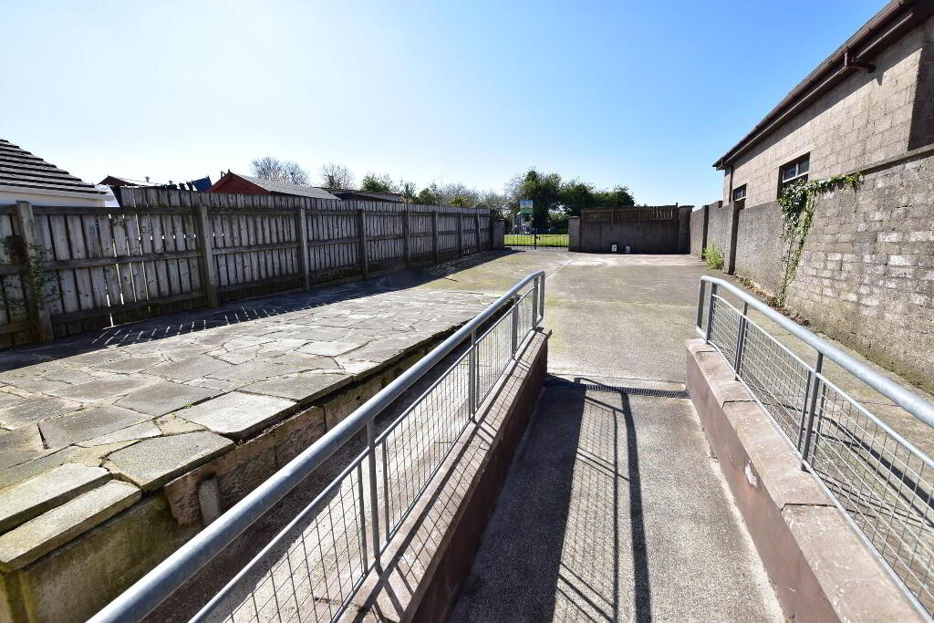 Enclosed rear yard with double entrance gates suitable for vehicular access. Concrete yard area suitable for secure car parking. Disability/ wheelchair ramp to the back door. Oil tank. Fuel store housing oil-fired boiler